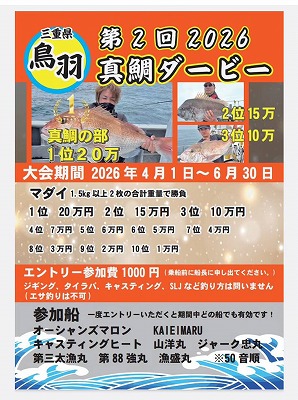 鳥羽、真鯛ダービー2026