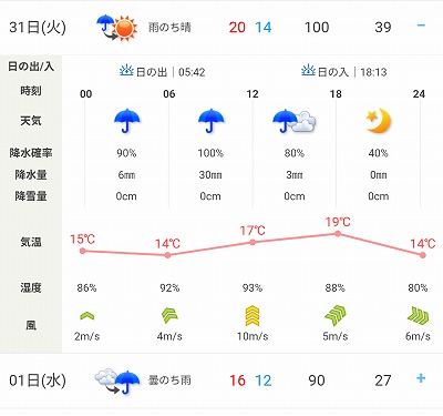 本日、31日(火)